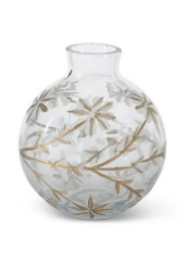 Crafted with exquisite detail and precision, this 4.17" white and Gold Etched Floral Glass Vase will elevate the style of any room. Made from high-quality glass, its intricate floral design adds a touch of elegance to your decor. Perfect for showcasing flowers or standing alone as a statement piece.