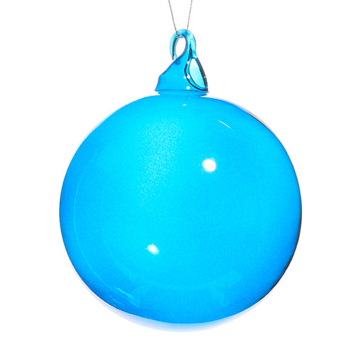 Bring a vibrant splash of color to your holiday décor with the RAZ Blue Glass Ball Ornament. Made from high-quality glass, its rich blue shade and glossy finish catch the light beautifully, adding a festive sparkle to any tree.
