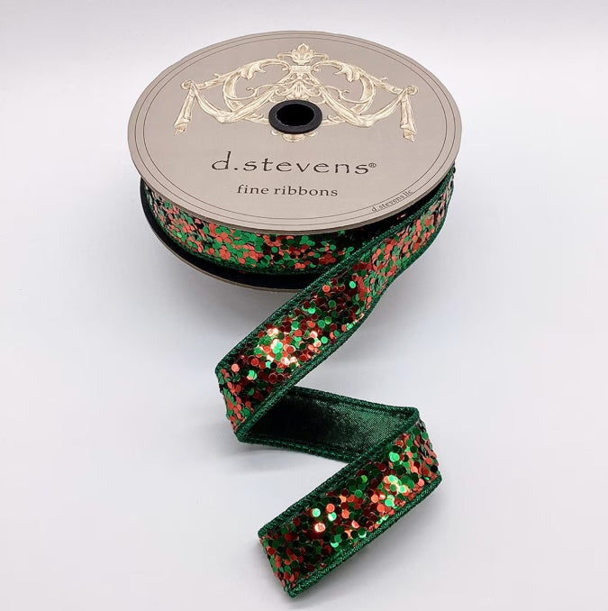 D. Stevens Cirque Glitter Ribbon - Emerald/red