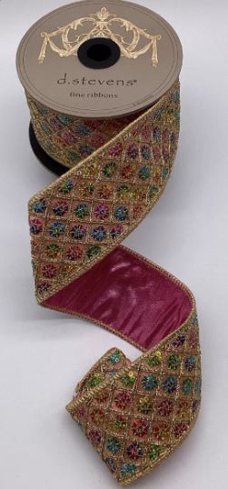 A glitzy stunning ribbon to add to your multicolored tree this year. Wired edges and pink dupioni back.
