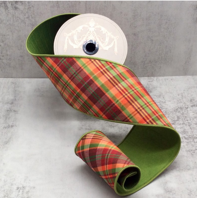 Indulge in luxury with our D. Stevens Dupioni Auburn Plaid Ribbon. Crafted with a stunning combination of orange, burgundy, and green, this ribbon adds a touch of elegance to any fall project. Made from high-quality dupioni fabric, it's the perfect addition to your collection.