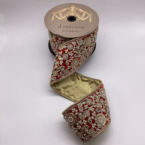 D.Stevens Red Velvet Mirror Pearl Floral Embroidery Ribbon is backordered and will ship as soon as it is back in stock.