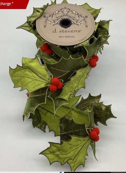 This unique holly ribbon has 3D detail and a whimsical, garland-like appeal.