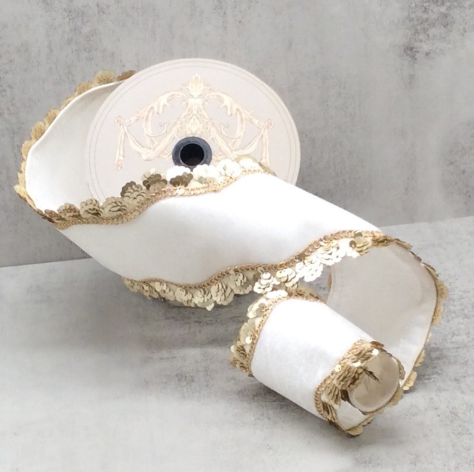 Add a touch of luxury to your holiday décor with D. Stevens Velvet Sequined Gold Ribbon. The soft velvet texture and shimmering sequins evoke a sense of opulence, perfect for transforming any Christmas display into a sophisticated showpiece. Elevate your decorating game with this exclusive ribbon.