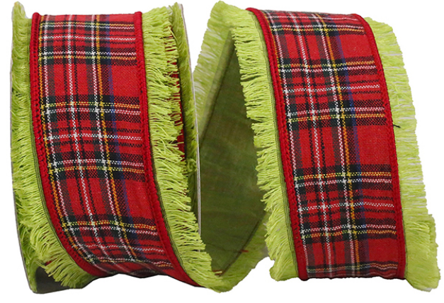 Get ready for the holiday season with our Lime Fringe and Plaid Wired Ribbon! This festive ribbon features a lime green color and plaid wired edge, making it perfect for all your Christmas decorating needs. Add a touch of fun and flair to your holiday home decor with this versatile ribbon.