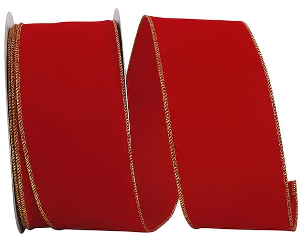 Red valued velvet ribbon with wired gold edging